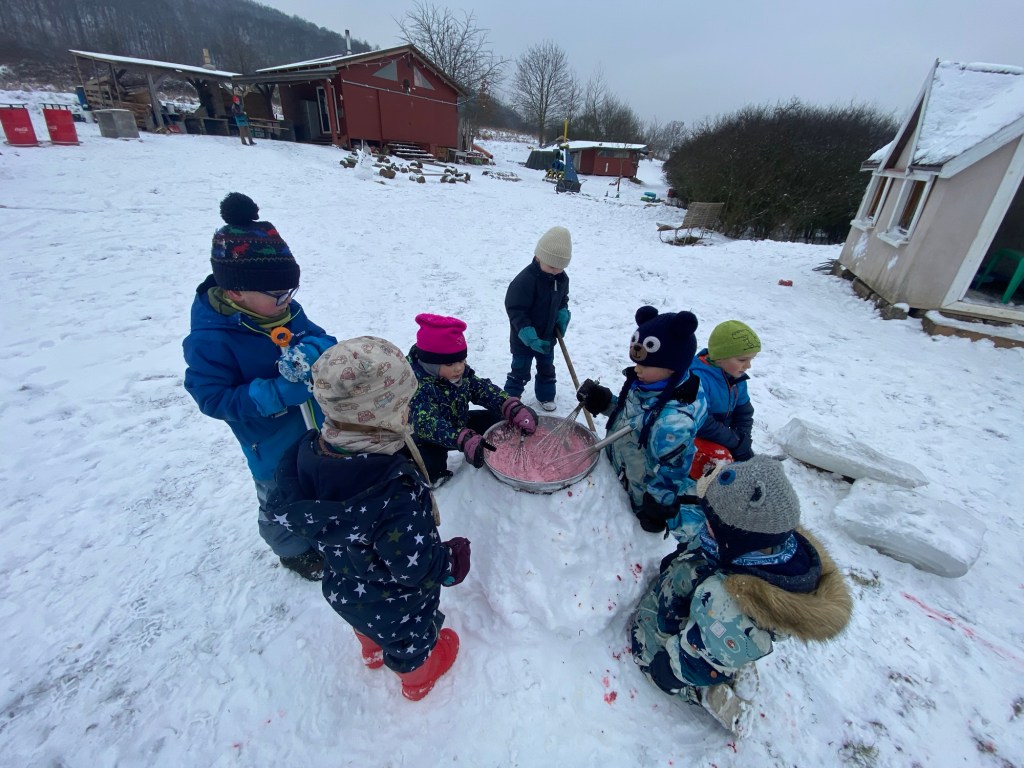 • dělali jsme malinovou zmrzlinu ve sněhu